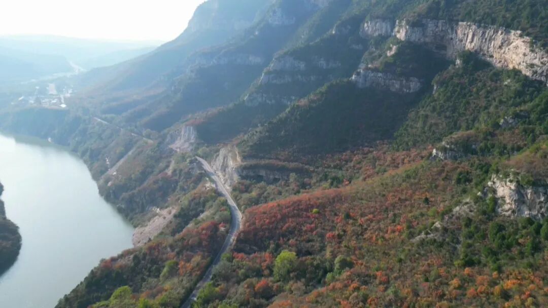 在珏山景区,湖光山水相依、漫山红叶相映,如画的秋日盛景美不胜收。许多游客专程前来欣赏秋日太行的绝美风光。